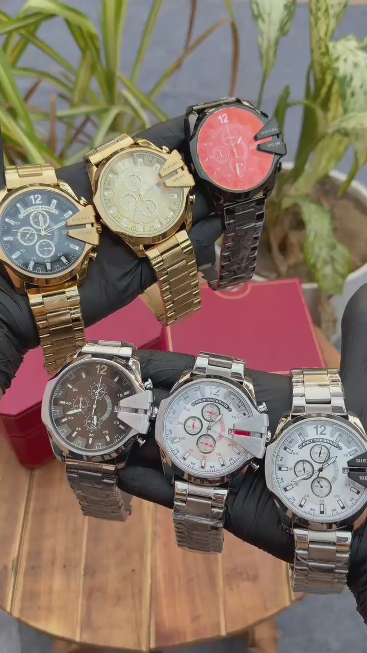 The Diese_l 10 Bar Japan Quality Watch (Golden-Black) is a premium timepiece designed for those who value style and durability. Featuring water resistance and backed by a 6-month machine warranty, this watch ensures reliable performance in everyday conditions. Its bold design and robust build make it a standout accessory for any collection.