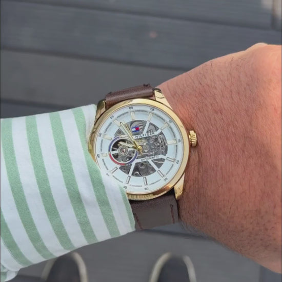 Tommy_hilfiger Automatic Leather DarkBrown-Gold-White